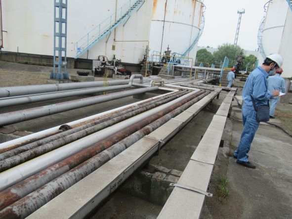地理位置及周邊環(huán)境: 1#聯合罐區(qū)處于煉油區(qū)域大油池區(qū)內。其東側為氣加硫磺裝置、堿渣儲罐、催化劑倉庫、2#重整聯合裝置,南側為污水處理裝置、黃浦江,東南側為煉油綜合大樓,西側為石油站罐區(qū),西北側為2#聯合罐區(qū),北側為3#硫磺回收裝置、140萬噸/年加氫裂化裝置; 2#聯合罐區(qū)地塊位于上海高橋石化內部北側位置,由四個區(qū)域組成,從東往西依次為:16#罐區(qū)(分2處)、15#罐區(qū)、17#罐區(qū),罐區(qū)分布比較分散。16#罐區(qū)分為2部分,東側都靠近浦東北路,路對面為居民區(qū);西側為廠內道路香樟路,路對面為2#重整加氫裝置、3#催化裝置、3#加氫裝置;北側靠近中高公路,公路對面為東生供用電器材廠;南側為廠內道路。15#罐區(qū)位于聯合罐區(qū)中部,北側為廠內道路梧桐路,再往北為中高公路;東北側為廠內道路廣玉蘭路,路對面為1#延遲焦化裝置和2#重整加氫裝置;東南側為廠內道路石榴路,石榴路對面為新硫磺裝置;西南側為廠內道路楓揚路,路對面為17#罐區(qū)。17#罐區(qū)位于2#聯合罐區(qū)最西部,其東面為廠內道路楓揚路及15#罐區(qū);南側為石油站罐區(qū);西面為廠內道路;北側為空地,空地以北為居民小區(qū); 3#聯合罐區(qū)裝置的東北面是中石化加油站,再往東北面是浦東北路,南面是廠內道路,西面是管架、香樟路,西北面是倉庫和地磅; #4聯合罐區(qū)北部東側為油管路,隔路為上海云峰倉儲公司和高華倉儲;南部東側為凌海路,隔路上海外高橋保稅物流園區(qū);南側為從東往西為高新河、大寨河,再往南為外環(huán)高速;西側為曹家浜路,隔曹家浜路為亞隆集裝箱儲運有限公司; #5聯合罐區(qū)位于浦東北路3270號,東側為居民小區(qū)南新西園;南側為速通物流上海外高橋網點、高西村委會、家家樂公寓;西側為浦東北路,隔路為立昌三堆場;北側為上海燕錦物流有限公司;西北為上海杜邦農化有限公司 | |