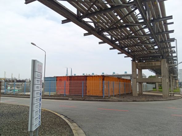 地理位置及周邊環(huán)境: SBPC廠區(qū)東側(cè)為楚華路,隔楚華路為巴斯夫化工有限公司;廠區(qū)南側(cè)為南河路,隔南河路是化工區(qū)防海大堤;北側(cè)為神工路,隔神工路為太古升達(dá)公司;西側(cè)是上海聯(lián)恒異氰酸酯有限公司、上海亨斯邁聚氨酯有限公司和上海孚寶港務(wù)有限公司。 | |