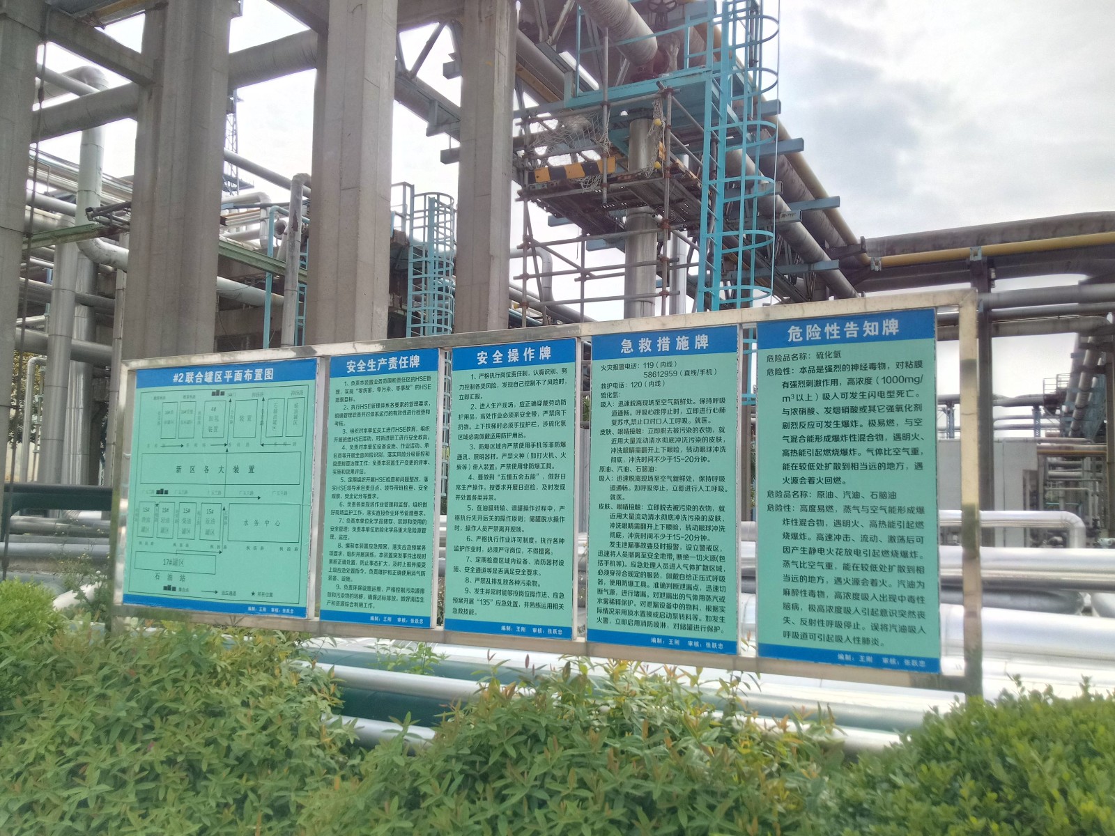 地理位置及周邊環(huán)境: 中國石化上海高橋石油化工有限公司生產(chǎn)區(qū)域分為高橋老區(qū)和漕涇新區(qū),其中高橋老區(qū)位于高橋老工業(yè)基地城鎮(zhèn)工業(yè)用地,漕涇新區(qū)位于上海化學(xué)工業(yè)區(qū)。 1#聯(lián)合罐區(qū)處于煉油區(qū)域內(nèi)。其東側(cè)為氣加硫磺裝置、堿渣儲(chǔ)罐、催化劑倉庫、2#重整聯(lián)合裝置,南側(cè)為污水處理裝置、黃浦江,東南側(cè)為煉油綜合大樓,西側(cè)為石油站罐區(qū),西北側(cè)為2#聯(lián)合罐區(qū),北側(cè)為3#硫磺回收裝置、140萬噸/年加氫裂化裝置。 2#聯(lián)合罐區(qū)地塊位于上海高橋石化內(nèi)部北側(cè)位置,由五個(gè)區(qū)域組成, 16#罐區(qū)(分2處)、15#罐區(qū)、17#罐區(qū)、三苯罐區(qū),罐區(qū)分布比較分散。16#罐區(qū)分為2部分,東側(cè)都靠近浦東北路,路對(duì)面為居民區(qū);西側(cè)為廠內(nèi)道路香樟路,路對(duì)面為2#重整加氫裝置、3#催化裝置、3#加氫裝置;北側(cè)靠近中高公路,公路對(duì)面為東生供用電器材廠;南側(cè)為廠內(nèi)道路。16#罐區(qū)2部分之間為4#加氫裝置和3#催化裂化裝置。15#罐區(qū)位于聯(lián)合罐區(qū)中部,北側(cè)為廠內(nèi)道路梧桐路,再往北為中高公路;東北側(cè)為廠內(nèi)道路廣玉蘭路,路對(duì)面為1#延遲焦化裝置和2#重整加氫裝置;東南側(cè)為廠內(nèi)道路石榴路,石榴路對(duì)面為新硫磺裝置;西南側(cè)為廠內(nèi)道路楓揚(yáng)路,路對(duì)面為3#污水。17#罐區(qū)位于2#聯(lián)合罐區(qū)最西部,其東面為廠內(nèi)道路楓揚(yáng)路及15#罐區(qū);南側(cè)為石油站罐區(qū);西面為廠內(nèi)道路;北側(cè)為空地,空地以北為居民小區(qū)。三苯罐區(qū)東北面是中石化加油站,再往東北面是浦東北路,南面是廠內(nèi)道路,西面是管架、香樟路,西北面是倉庫和地磅。 #4聯(lián)合罐區(qū)北部東側(cè)為油管路,隔路為海武輪胎有限公司;南部東側(cè)為凌海路,隔路為中國(上海)自由貿(mào)易試驗(yàn)區(qū);南側(cè)為外環(huán)高速;西側(cè)為曹家浜路,隔曹家浜路為空地;北側(cè)為高三港。 #5聯(lián)合罐區(qū)位于浦東北路3270號(hào),東側(cè)為居民小區(qū)南新西園;南側(cè)為速通物流上海外高橋網(wǎng)點(diǎn)、高西村委會(huì)、家家樂公寓;西側(cè)為浦東北路,隔路為立昌三堆場(chǎng);北側(cè)為上海燕錦物流有限公司;西北為上海杜邦農(nóng)化有限公司 | |